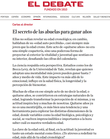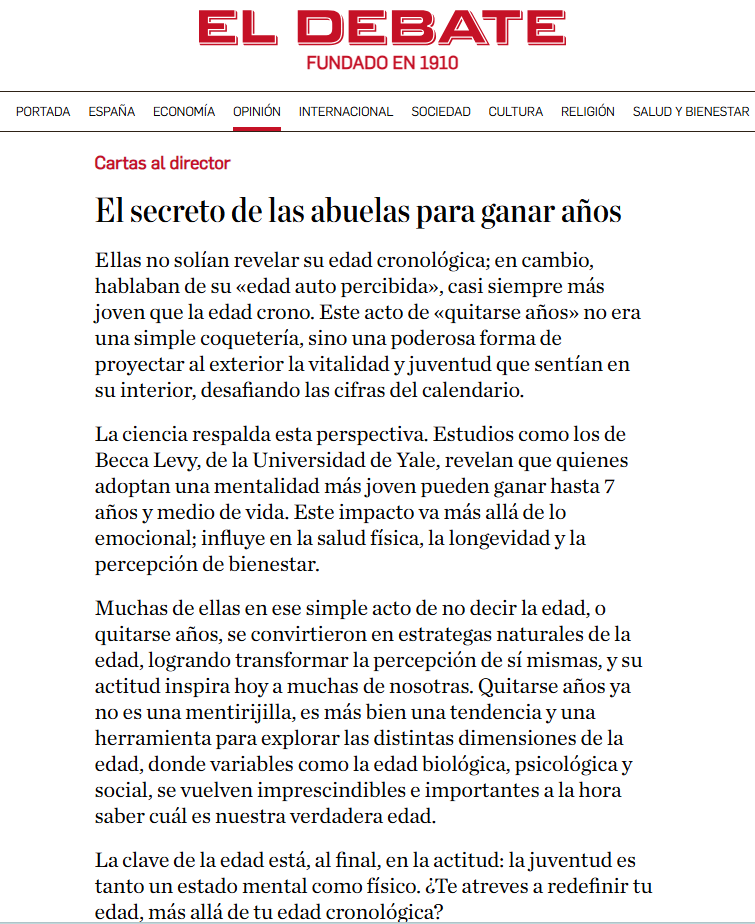 "Una persona que se siente más joven tiene la probabilidad de vivir siete años más que una que se siente más vieja"